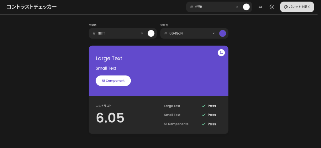 使いたい文字の色と背景色を設定してコントラストを数値で見ることができます✨