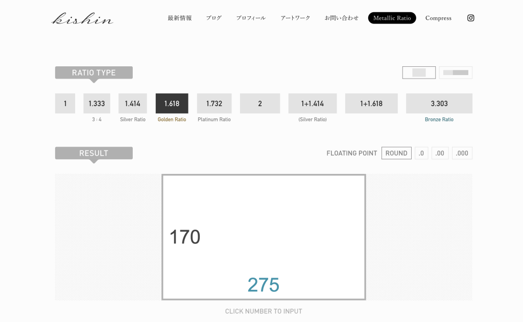 このサイトは幅か高さを入力すると黄金比で片方の数値が出る便利ツールです。