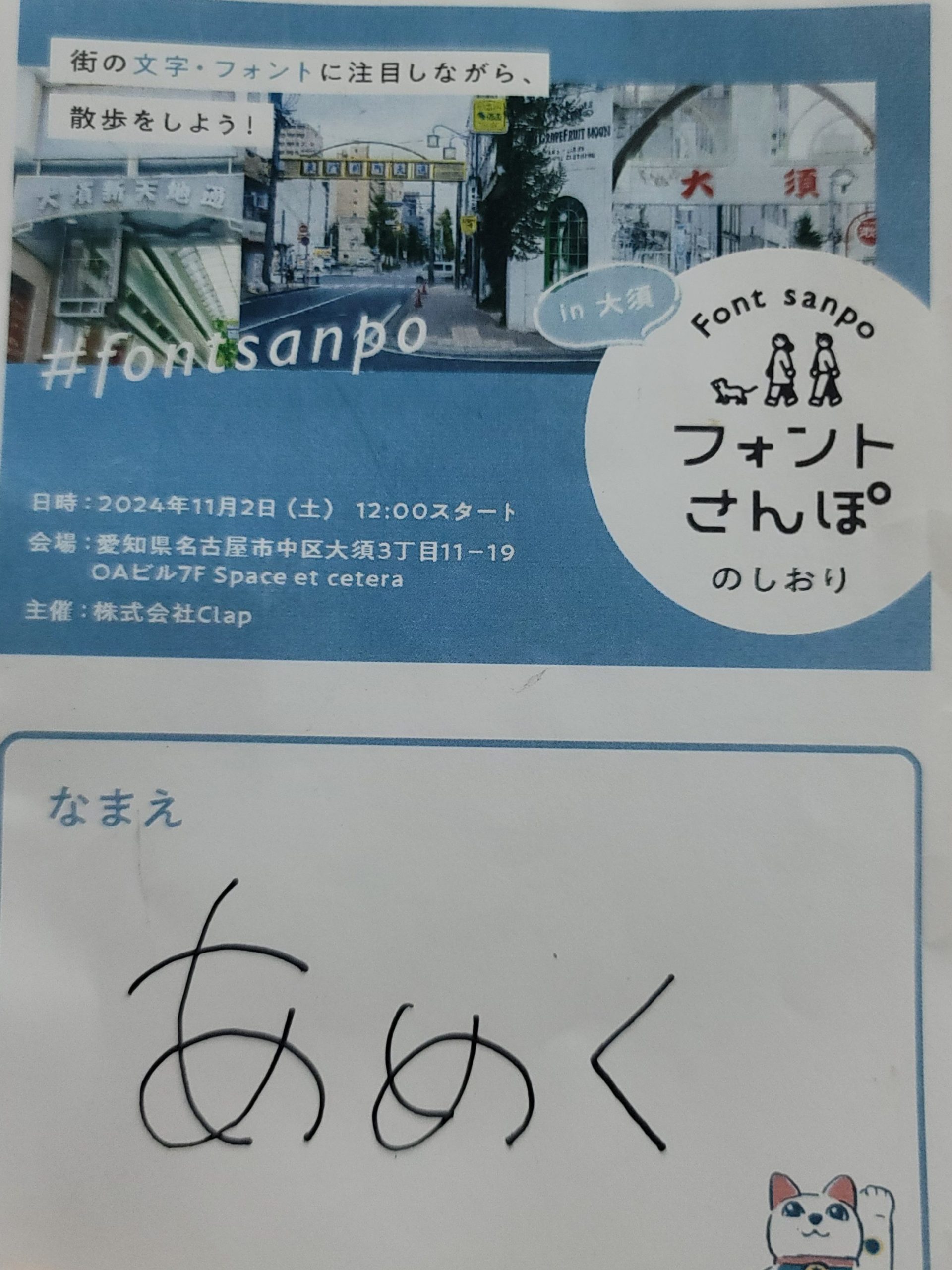 今回は「フォントさんぽ in大須」という株式会社Clapさん主催のイベントに参加してきたので感想をまとめたいと思います!