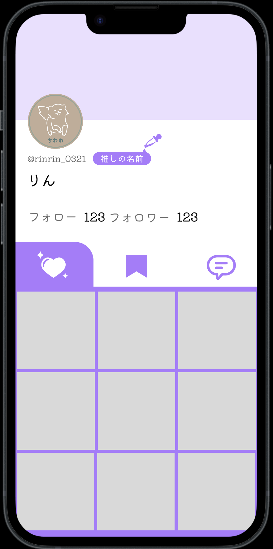 よくあるプロフィールアプリの項目にプラスで全体のテーマカラーを変えられて推しの名前を表示できる機能があるといいなと思ってデザインしました。