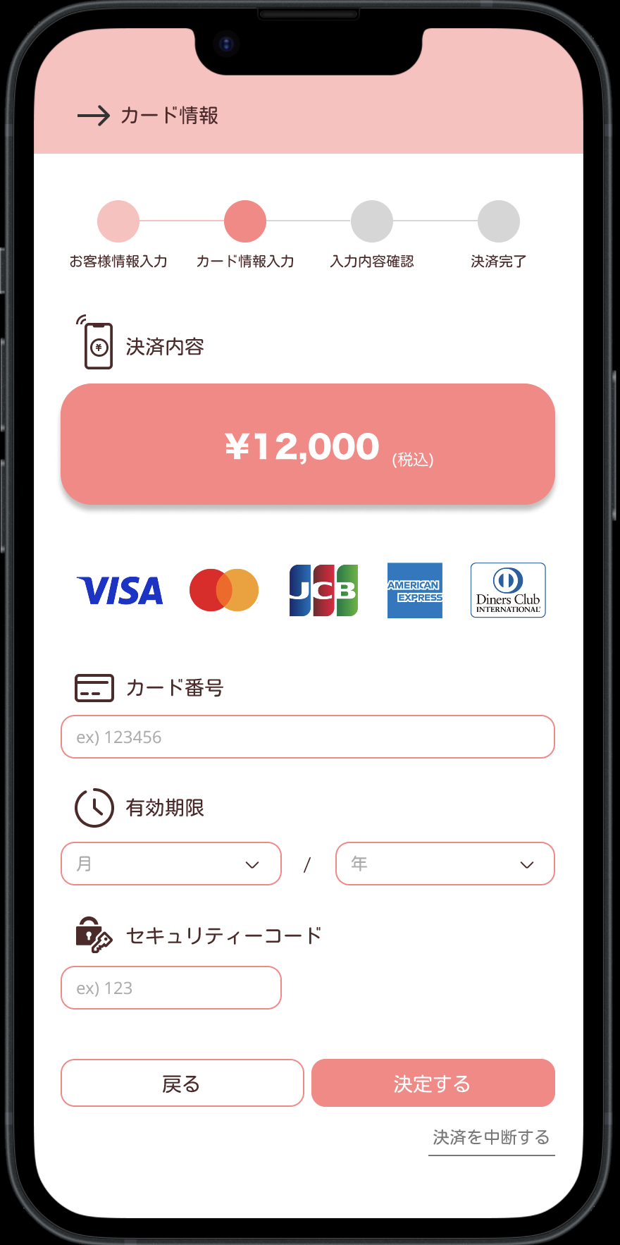 今回もクレジットカード決済ページに必要な要素を並べてからデザインをしました。